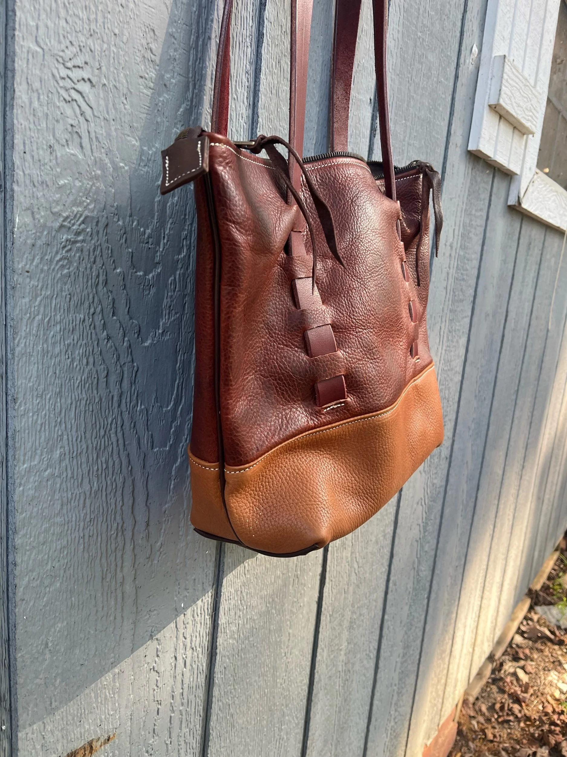 Premium Leather: Made from high-quality full-grain leather, this bag is designed to age beautifully, developing a unique patina over time. This leather is from Wicket and Craig in Pennsylvania, and is a fully vegetable tanned leather.